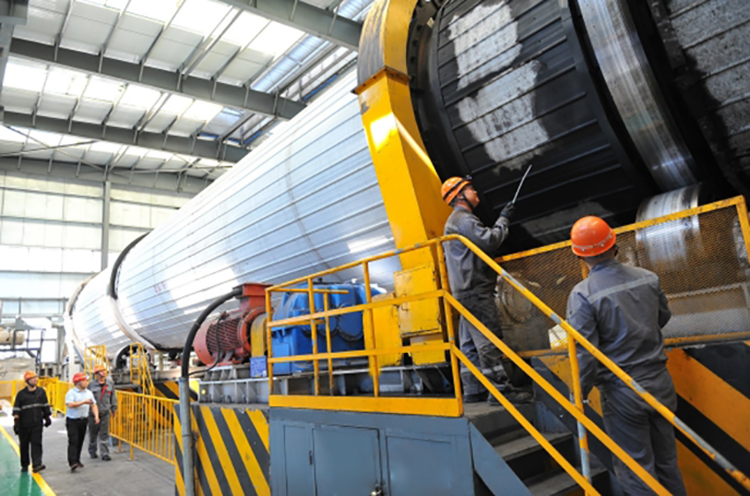 图为在顾北矿煤泥干燥车间,工作人员在对煤泥干燥设备进行检修。