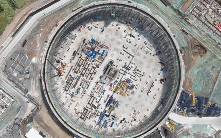 图为谢桥电厂项目2号冷却塔建设俯拍图。