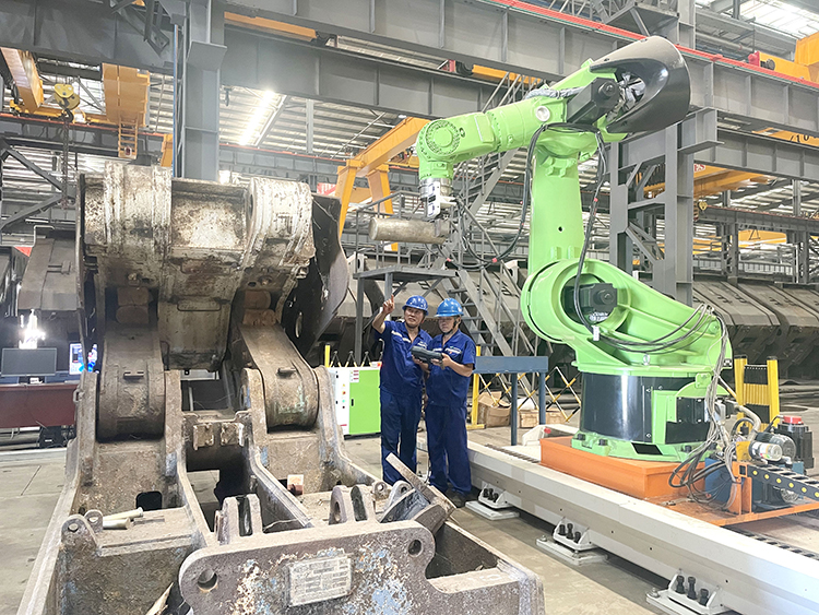 图为该公司职工在调试机器人。 (通讯员 王艺 摄)