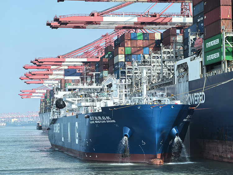 8月16日上午,由集团公司投资建造的全球首款、中国首制江海联运LNG加注运输船“淮河能源启航”号,在上海洋山港盛东码头圆满完成对国际航行船舶CMA CGM TENERE“船对船”LNG燃料加注服务,本次作业是“淮河能源启航”号建成交付后的首次试加注,共计完成5300立方米LNG燃料加注。