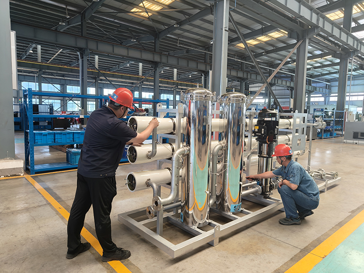 图为该公司职工正在检查即将交付的矿井水处理设备。 (徐璐璐 摄)