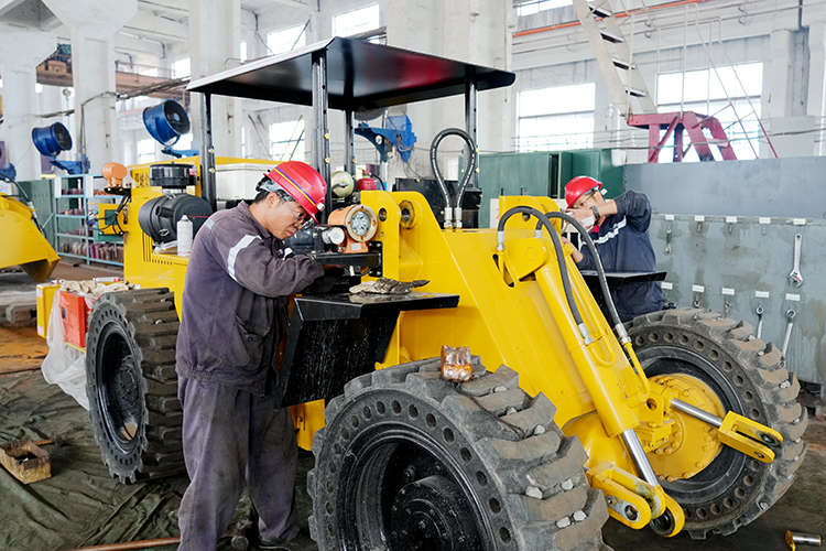 图为该矿工作人员对即将在采煤工作面投用的防爆装载机进行调试。(张士好 摄)